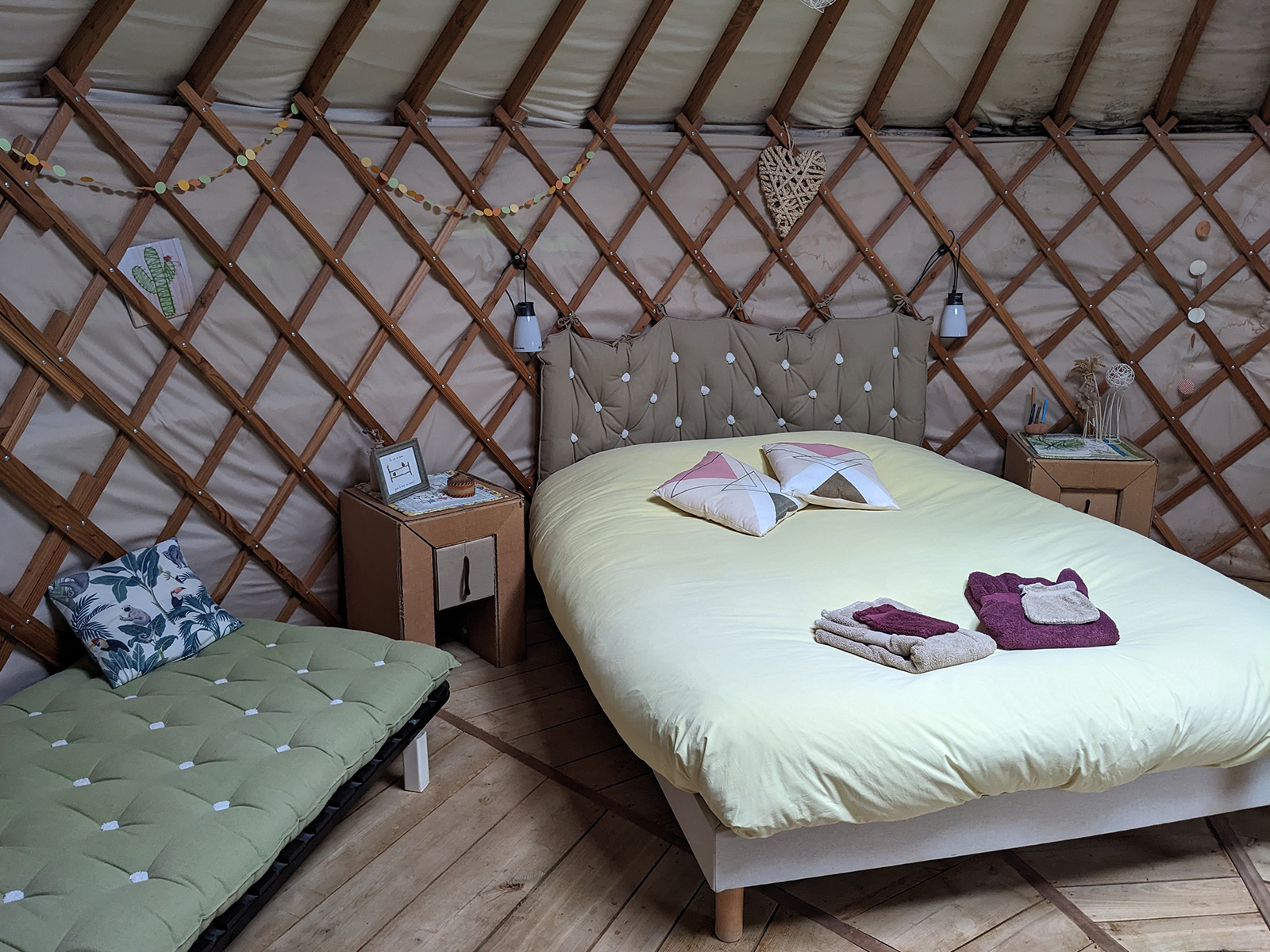 Vous offrir la nuit la plus reposante possible. C’est ce que nous vous proposons grâce à un grand lit douillet 160×200 conçu par Laine et Compagnie (87).